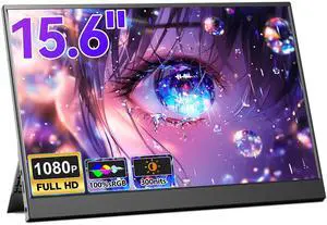 Portable Monitor, 15.6" Ultra-Slim 1080P FHD IPS 85% sRGB Second Screen, USB-C HDMI Plug & Play, Built-in Kickstand & Speakers for Laptop/Mac/Switch/Xbox