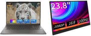 KurieTim Business and Student Laptop, 16" IPS 1920*1200 Display Screen, AMD Ryzen 3250U(2C/4T, Up to 3.5GHz) , 16GB RAM, 1TB SSD, Windows 11 Pro Laptop Computer, Fingerprint Unlock, Backlit Keyboard and Portable Monitor 23.8inch 1080P FHD USB-C HDMI Laptop Screen Extender Gaming Monitor w/Adjustable Kickstand, HDR Plug&Play, Ultra-Slim IPS Display EyeCare External Monitor for Laptop PC Phone Mac - $599.98