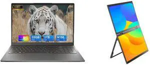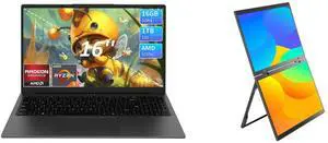 KurieTim Business and Student Laptop, 16" IPS 1920*1200 Display Screen, AMD Ryzen 3250U(2C/4T, Up to 3.5GHz) , 16GB RAM, 1TB SSD, Windows 11 Pro Laptop Computer, Fingerprint Unlock, Backlit Keyboard and KURIETIM Portable Dual Monitor - 15.6" 1080P 60Hz HDR Stacked Foldable Laptop Screen Extender with Stand, 315° Screen Adjustment, Plug & Play, USB-C HDMI Second Monitor for Laptop, PC - $699.98