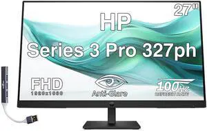 HP Series 3 Pro 327ph 27" FHD IPS Monitor with 5ms Response Time, Anti-Glare, Flicker Free, VESA Mount (100mm), Displayport, HDMI & Dockztorm USB Port Expander, Black Color (B0CG8UT#ABA)