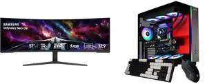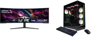 Samsung Odyssey Neo G9 57" DUAL UHD 4K 240Hz with AMD FreeSync Premium Pro 1ms HDR1000 Quantum Mini LED Curved Gaming Computer Monitor with Height Adjustable, Swivel & Tilt Stand LS57CG952NNXZA MSI Gaming Desktop PC Aegis RS2 AI C2NVP7-1444