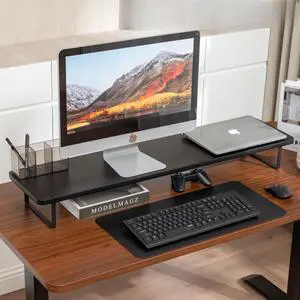 Borywisful Dual Monitor Stand Riser,41.3'' Solid Bamboo&Steel Computer Monitor Riser, large monitor stand Suitable for 2 Monitors, Tvs, and Printers- (Black)