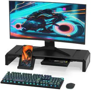 Heymaster Monitor Stand Riser, Foldable Computer Monitor Riser, Adjustable Length Computer Stand, Desk Shelf Riser with Storage Drawer &Tablet Phone Stand for Desktop, Laptop