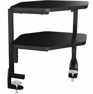 VIVO Black Corner Clamp-on 17" Above or Below Desk 2-Tier Shelving Organizer