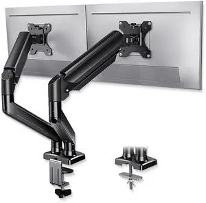 MOUNT PRO Dual Monitor Desk Mount, Pneumatic Monitor Arms for 2 Monitors Max 39 Inches, Adjustable Dual Computer Monitor Stand Each Arm Holds up to 26.5lbs, VESA Mount with C Clamp & Grommet Base