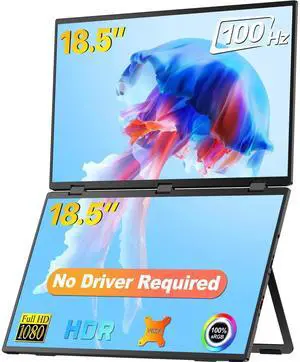 UPERFECT 18.5" Delta Dual Portable Monitor - 100Hz 1080P HDR 360° Folding Screen Extender | Stand & VESA Mount | Plug & Play No Driver for Laptop/PC/Phone/Game Console