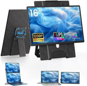 DZVW Laptop Screen Extender Portable Monitor - Dual 16" 1200P FHD Travel Monitor Fit for 13-17" Laptops Plug & Play 360 Rotating Detachable Stand Height Adjustable for Travel/Work/Study