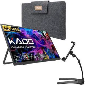 CJkao Portable Monitor 15.6 FHD 1080P USB-C & HDMI Display Ultra-Slim IPS Screen w/Smart Cover, Dual Speakers, HDR, Eye-Care, External Monitor for Laptop, Mac, Phone, PS5, Xbox, Switch, Black