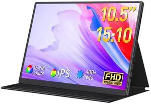 DAMRAPT Portable Monitor Small 10.5 inch 1920x1280 FHD 100% SRGB, Mini Travel Monitor w/Smart Cover & Speaker, USB C HDMI Portable Gaming Display, External Screen for Laptop Switch PS5/4