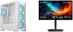 ASUS TUF Gaming GT302 ARGB White Edition ATX Mid-Tower Case Four 140 x 28 mm ARGB fans for high airflow and static pressure, interchangeable side panel, hidden-connector motherboard support GIGABYTE 27" UHD 4K 240Hz with AMD FreeSync Premiu