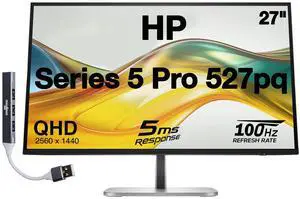 HP Series 5 Pro 527pq 27" QHD IPS Monitor With 5ms Response Time, Anti Glare, Flicker Free, Pivot, VESA Mount (100mm), Displayport, HDMI & Dockztorm USB Port Expander, Silver/Black (9D9S0UT#ABA)