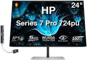 HP Series 7 Pro 724pu 24" WUXGA IPS Monitor with 5ms Response Time, Anti-Glare, Flicker Free, VESA Mount (100mm), Displayport, HDMI & Dockztorm USB Port Expander, Black/Silver (8Y2F7AA#ABA)