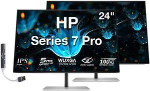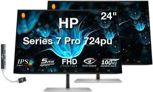 HP Series 7 Pro 724pu 24" WUXGA IPS Monitor with 5ms Response Time, Anti-Glare, Flicker Free, VESA Mount (100mm), Displayport, HDMI & Dockztorm USB Port Expander, Black/Silver (8Y2F7AA#ABA) 2 Pack