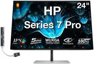 HP Series 7 Pro 24" WUXGA IPS Monitor with 5ms Response Time, Anti-Glare, Flicker Free, 350 nits Brightness, VESA Mount (100mm), Displayport, HDMI & Dockztorm USB Port Expander, Black/Silver