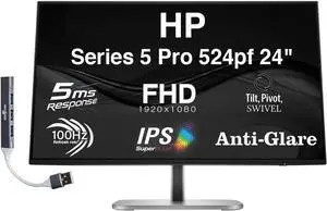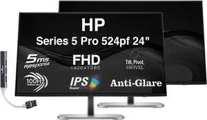 HP Series 5 Pro 24-inch 524pn WUXGA (1920 x 1200) 100Hz 5ms LCD IPS Monitor, 2-Pack Bundle, Low Blue Light, HDMI, DisplayPort, USB Hub