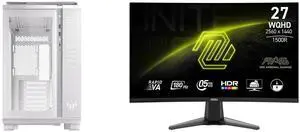 ASUS TUF Gaming GT502 White ATX Mid-Tower Computer Case with Front Panel RGB Button, USB 3.2 Type-C and 2x USB 3.0 Ports, 2- way Graphic Card Mounting Orientation Compatible, 360mm and 280mm Radiator MSI 27" QHD 2K 1440P 180Hz with AMD Free