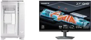 ASUS TUF Gaming GT502 White ATX Mid-Tower Computer Case with Front Panel RGB Button, USB 3.2 Type-C and 2x USB 3.0 Ports, 2- way Graphic Card Mounting Orientation Compatible, 360mm and 280mm Radiator GIGABYTE 27" QHD 2K 1440P 300Hz/OC 320Hz