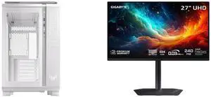ASUS TUF Gaming GT502 White ATX Mid-Tower Computer Case with Front Panel RGB Button, USB 3.2 Type-C and 2x USB 3.0 Ports, 2- way Graphic Card Mounting Orientation Compatible, 360mm and 280mm Radiator GIGABYTE 27" UHD 4K 240Hz with AMD FreeS