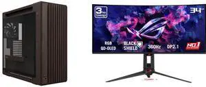 ASUS ProArt PA602 Wood Edition Retro Brown E-ATX Mid-Tower Case with Tempered Glass, Supports 440mm GPUs, 420mm Radiators, Includes One 140mm and Two 200mm Pre-Installed Fans. ASUS ROG SWIFT 34 inch QHD 2K 1440P 360Hz AMD FreeSync Premium P