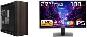 ASUS ProArt PA602 Wood Edition Modern Black E-ATX Mid-Tower Case with Tempered Glass, Supports 440mm GPUs, 420mm Radiators, Includes One 140mm and Two 200mm Pre-Installed Fans. ASRock Phantom Gaming 27" QHD 2K 1440P 180Hz IPS with AMD FreeS
