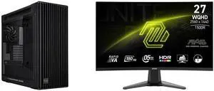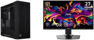 ASUS ProArt PA602 E-ATX Computer Case, 420mm radiator support, Dual 200mm built-in fans, front panel IR dust indicator, power lock latch, tool-less PCIe mounting & GPU Holder, 20Gbps USB-C front I/O MSI 27" QHD 2K 1440P 180Hz with AMD FreeS