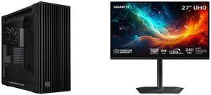 ASUS ProArt PA602 E-ATX Computer Case, 420mm radiator support, Dual 200mm built-in fans, front panel IR dust indicator, power lock latch, tool-less PCIe mounting & GPU Holder, 20Gbps USB-C front I/O GIGABYTE 27" UHD 4K 240Hz with AMD FreeSy