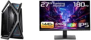 ASUS ROG Hyperion GR701 EATX full-tower computer case with semi-open structure, tool-free side panels, supports up to 2 x 420mm radiators, built-in graphics card holder,2x front panel Type-C ASUS TUF Gaming 27" QHD 2K 1440P 180Hz with AMD F