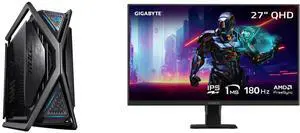 ASUS ROG Hyperion GR701 EATX full-tower computer case with semi-open structure, tool-free side panels, supports up to 2 x 420mm radiators, built-in graphics card holder,2x front panel Type-C GIGABYTE 27" QHD 2K 1440P 180hz IPS with AMD Free