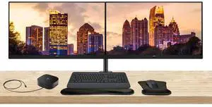 HP Series 7 Pro 27-inch 727pk 4K UHD 2160p LCD HDR Monitor, 2Pack, Daisy Chain, Thunderbolt 4, RJ-45, Desk Mount Stand, USB-C Multiport G5 Dock, MK670 Wireless Keyboard & Mouse, Gel Mouse & Wrist Pad
