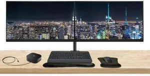 HP Series 5 Pro 34-inch 534pm Curved 2K WQHD Conferencing Monitor, 2-Pack, Webcam, Speaker, Desk Mount Stand, USB-C Multiport G5 Dock, MK670 Wireless Keyboard & Mouse, Gel Mouse & Wrist Pad