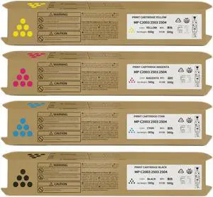 MP C2003 C2503 Toner Cartridges 841918 841921 841920 841919 Toner Cartridges Replacement for Ricoh Aficio Lanier Savin MP C2003 C2503 C2004 C2504 C2503H Printer Ink 4-Pack (Black Cyan Magenta Yellow)
