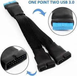 Aomoproing USB 3.0 Header Splitter Extension Cable, Motherboard 19/20 Pin Male to Female Adapter, Mini 1 to 2 Out Internal USB 3.0 Extension Cord 6 Inch