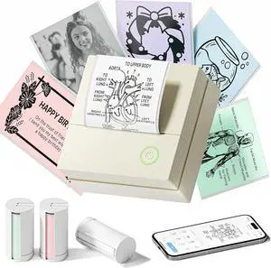 Sticker Printer, Mini Portable Bluetooth Thermal Printer with Multiple Templates & App Support, Inkless Print Pod for Study Notes, DIY Labels, Home School Office Usee (Beige)