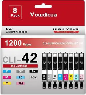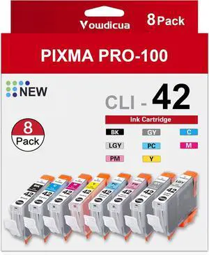 CLI-42 Ink Cartridges High Yield Compatible CLI42 CLI 42 Ink Replacement for Canon Pixma Pro-100 Pro 100 Pro-100S Printers(8-Pack Black,Grey,Cyan,Light Grey,Photo Cyan,Magenta,Photo Magenta,Yellow)