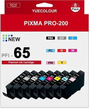 CLI-65 CLI 65 Ink Cartridges High Yield Compatible 8-Color Ink Value Pack Replacement, Compatible with PIXMA PRO-200 Printer - High Yield, (8pack1BK 1GY 1LGY 1C 1PC 1M 1PM 1Y)
