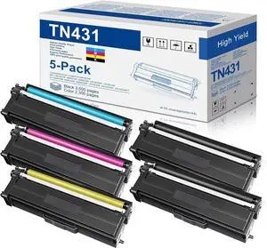 TN431 Toner Cartridge Set - 5 Pack TN431BK TN431C TN431M TN431Y Replacement for Brother TN 431 TN-431 Toner for HL-L8360CDW HL-L8260CDW MFC-L8610CDW MFC-L8900CDW MFC-L8690CDW Printer Toner