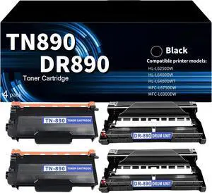 2 Pack TN890 Toner Cartridge and 2 Pack DR890 Drum Unit Replacement for Brother TN-890 DR-890 to use with HL-L6250DW HL-L6400DW HL-L6400DWT MFC-L6750DW MFC-L6900DW Printer