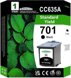 701 Ink Cartridges (CC635A 1-Pack, Black) Compatible Ink Replacement for HP 701 Fax 640 650 2140 Printer