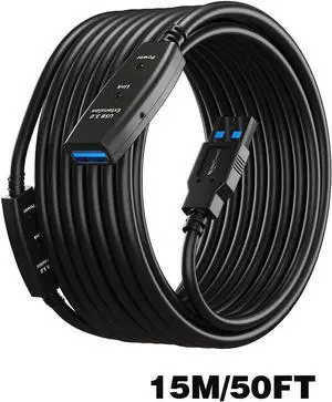 USB 3.0 Extension Cable (50FT, Active, 5 Gbps,Signal Booster, Type A Male to Female Cord) - Long USB Repeater Extender for VR Headset, Printer, Hard Drive, Keyboard, Mouse, Xbox