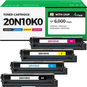20N10K0 20N10C0 20N10M0 20N10Y0 Toner Cartridge Set 4-Pack Replacement Compatible with Lexmark Color CS331dw CS431dw CX331adwe CX431adw CS331 CS431 CX331 CX431 Laser Printer Black Cyan Magenta Yellow
