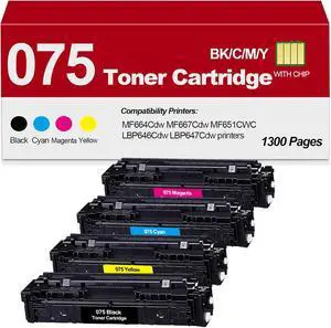 CRG 075 Toner Cartridge Set for MF664Cdw MF667Cdw MF651CWC LBP646Cdw LBP647Cdw Color Laser Printers, Bundle with Black/Cyan/Magenta/Yellow
