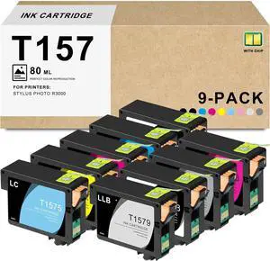 Remanufactured T157 Ink Cartridges Replacements with for Stylus Photo R3000 Printer (9 Pack: 80ML T157120 T157220 T157320 T157420 T157520 T157620 T157720 T157820 T157920) 157 Ink Cartridge