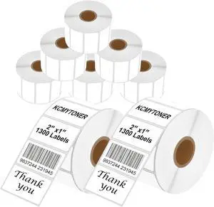 8 Rolls KCMYTONER 2" x 1" Direct Thermal Labels Barcode FBA Address Paper Compatible for Zebra Rollo and Most Other Thermal Label Printers, 1300/Roll
