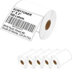 6 Rolls KCMYTONER 4" x 3" Direct Thermal Labels Barcode Address Paper Compatible for Zebra, Rollo and Most Other Thermal Label Printers, 500/Roll