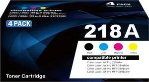 218A Toner Cartridges 4 Pack with Chip Replacement for HP 218A W2180A 218X W2180X for Color LaserJet Pro MFP 3301fdw 3301 3201dw 3301sdw 3301cdw Printer Ink (B/C/Y/M Color)
