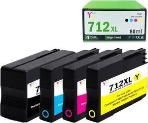 712 XL Ink Cartridge Set (Black Cyan Magenta Yellow) Compatible with HP 712XL 3ED71A 3ED69A 3ED68A 3ED67A Ink Cartridge for DesignJet T210 T230 T250 T630 T650 Printers (4 Pack Color)