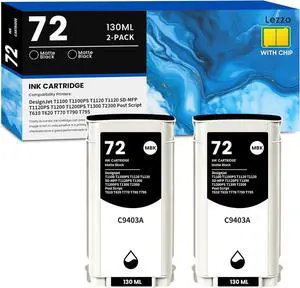 Lezzo 72 Matte Black Ink Cartridge 2-Pack 72 Ink Cartridge Replacement for HP 72 Ink for DesignJet T770 T790 T795 T610 T620 T1100 T1120 T1200 T1300 T2300 Printer