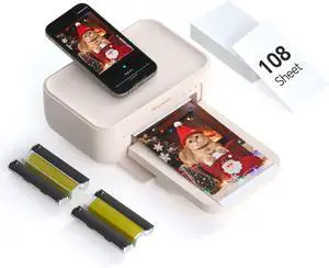 HPRT 4x6 Photo Printer with 108 Sheets & 2 Ribbons, Portable Picture Printer for iPhone & Android Smartphones, Instant Phone Photo Printer, Dye Sublimation, Home Use, Ideal Gift, Beige