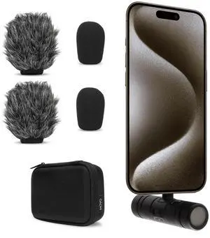 2-in-1 Wireless Lavalier Microphone for iPhone/Android/Camera/USB-C Noise Cancelling Lapel Mic, 7-Hour Mini Clip-On Battery, for Vlogging, YouTube, TikTok, Live Streaming & Video Recording