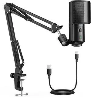 Dynamic Podcast Microphone, XLR/USB Mic for Podcasting, Recording, Streaming, XLR Cardioid Studio Mic with Quick Mute, 3.5mm Headphone Jack, Volume Control, Microfono with Boom Arm, Black,TD510+